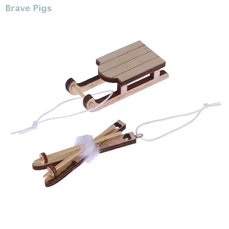 1 Set Poppenhuis Miniatuur Houten Skiplank Kerst Scène Decoratie Poppenhuis Kerst Accessoires Kinderen Speelgoed Cadeau