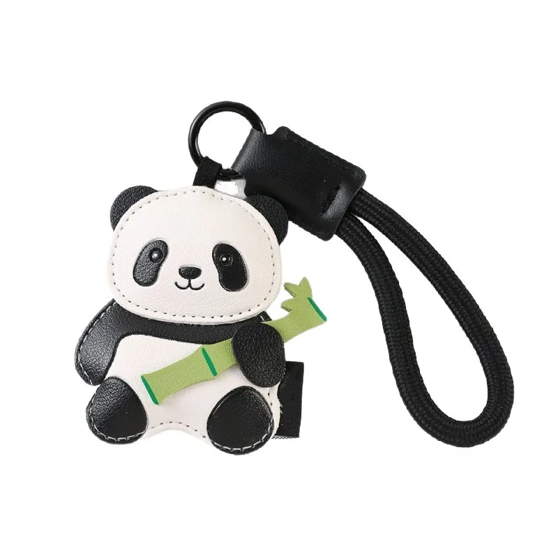 Echt leer rode panda tas hanger autosleutelhanger accessoires schattige panda cartoon prachtige schooltas vintage hanger