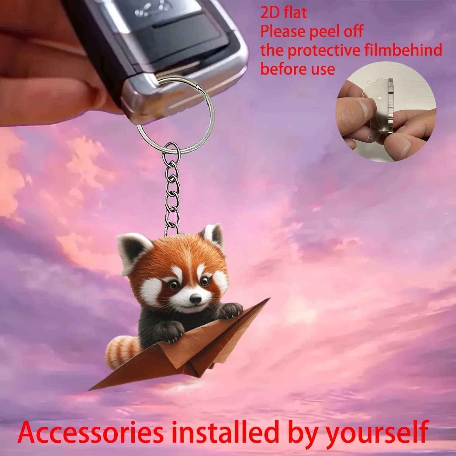 Charme Rode Panda Sleutelhanger 2D Acryl Schattig Hangend Ornament Levendige Kerstboom Accessoires Feestelijke Hanger Vakantiecadeau Rugzak