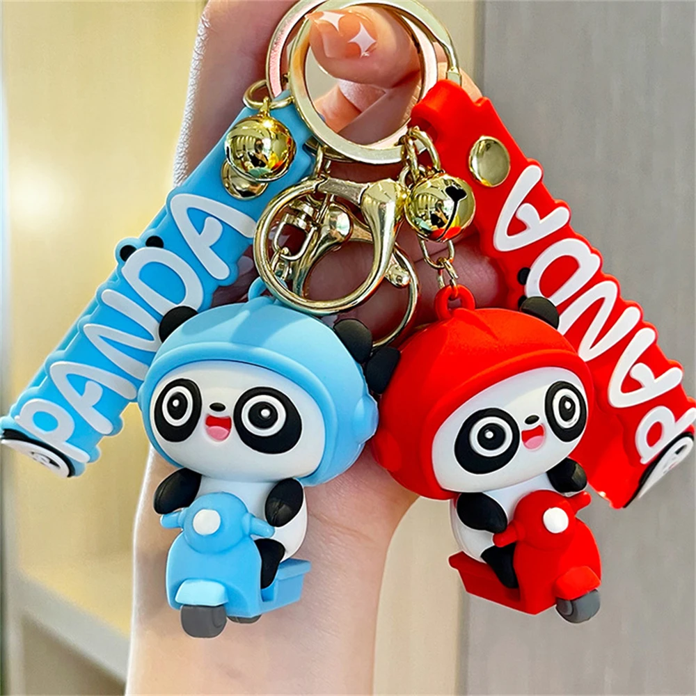 1 Stuks Nieuwe Schattige Panda Cartoon Paar Auto Sleutelhanger Hanger Mobiele Telefoon Hanger Creatief Cadeau Rood Blauw