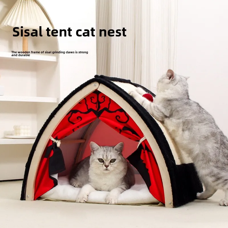 Vleermuis-kattent met Halloween-thema Opvouwbaar huisdierbed met sisalmat Ademende draagbare onderdak voor alle seizoenen voor katten