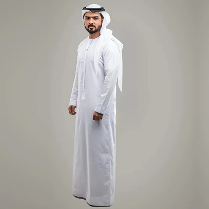 Nationaal Kostuum Moslim Kleding Wit Jubba Thobe Lange Mouw Gewaden Dubai Midden-oosten Mannen Islamitische Arabische Kaftan Headwe NM27