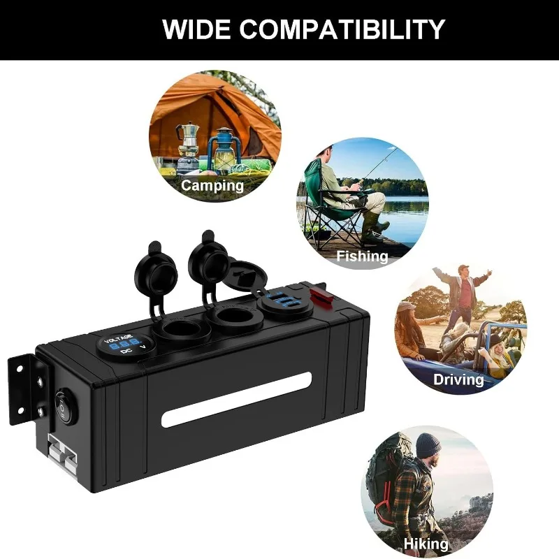 Multifunctionele autolader met Anderson Plug & USB-poorten, digitale spanningsmeter + sigarettenaansteker voor RV/vrachtwagen 12-24V voedingssysteem