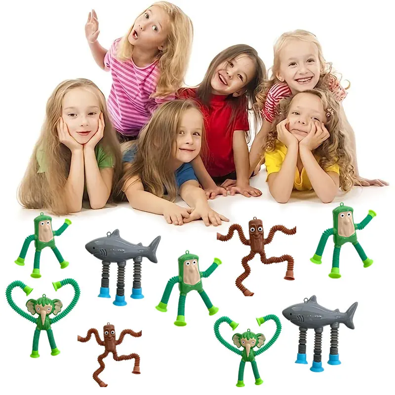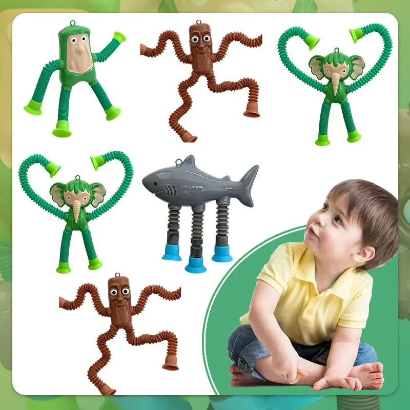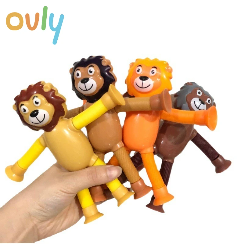 Zuignappen Pop Tube Leeuw Aap Giraffe Zintuiglijke Push It Bubble Decompressie Pijp Anti-stress Fidget Autisme Angst Balg speelgoed