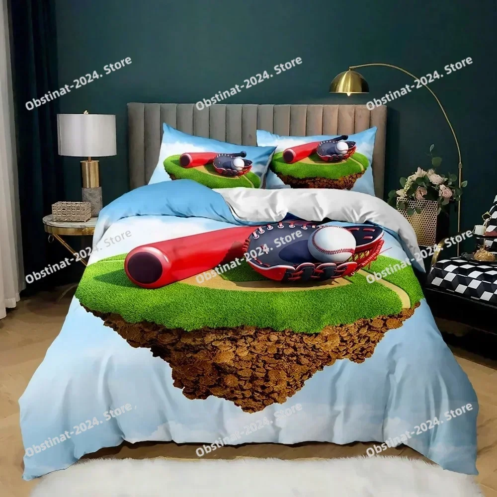 3D Honkbalspel Koning Koningin Dekbedovertrek Bal Sport Thema Beddengoed Set Atleet Competitieve Dekbedovertrek Polyester Dekbedovertrek