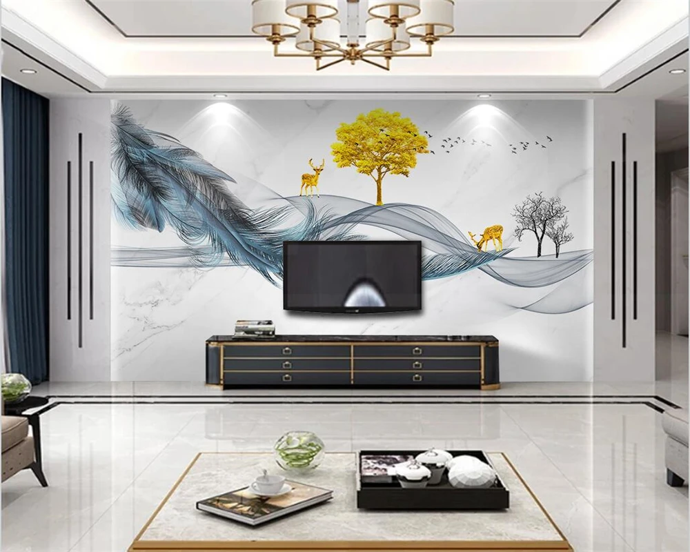 Beibehang Aangepaste behang woondecoratie moderne minimalistische steen inkt landschap elanden vliegende vogel licht luxe achtergrond behang
