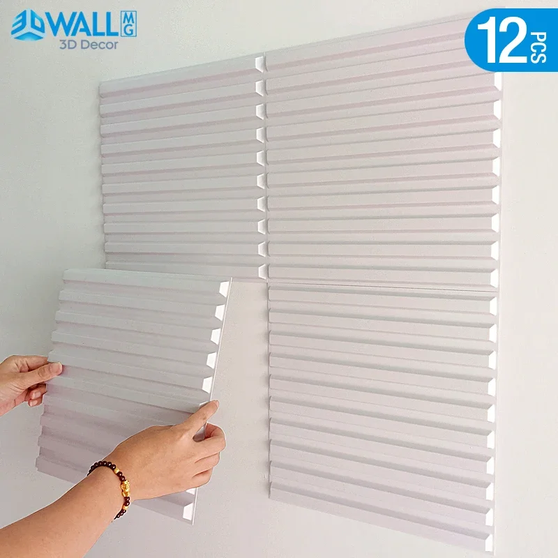 4 stks 50x50 cm Premium 3D Wave wandpaneel Streep Behang PVC Muur Decor Woonkamer Slaapkamer Kantoor Decor TV Achtergrond 9 verkocht
