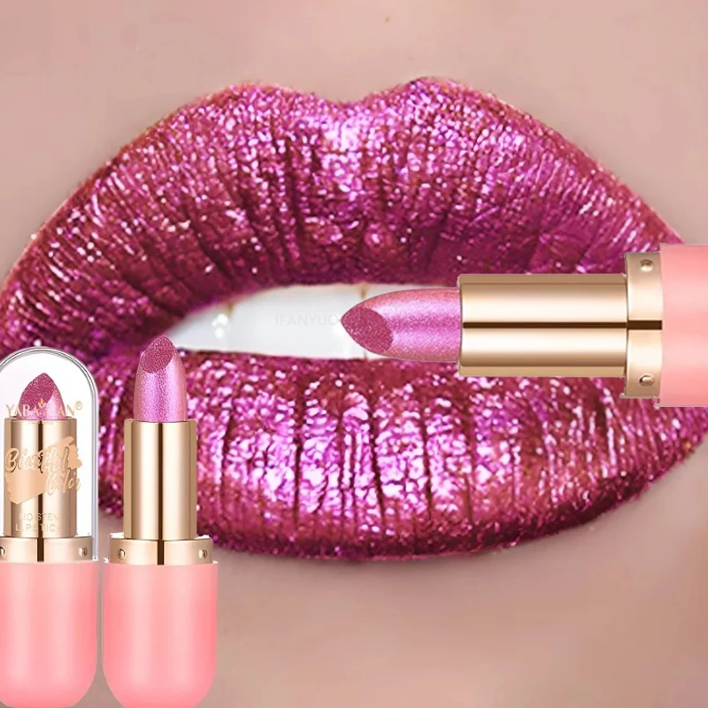 7-kleuren Aurora Chameleon Metallic Lipstick Hoogglans Langdurige Diamant Blauw Paars Lipgloss voor Kerstmis & Toneelmake-up