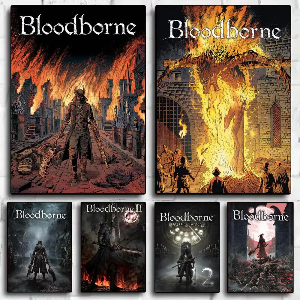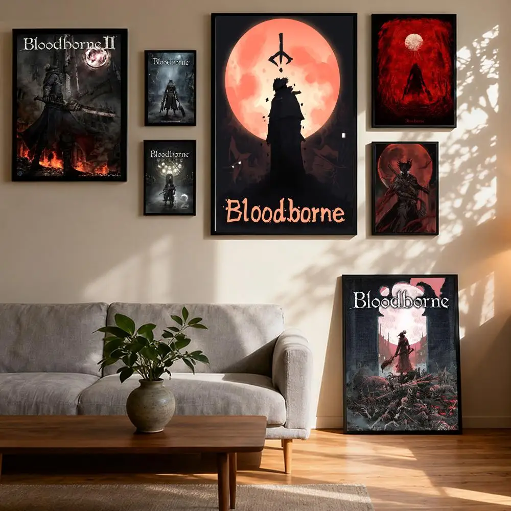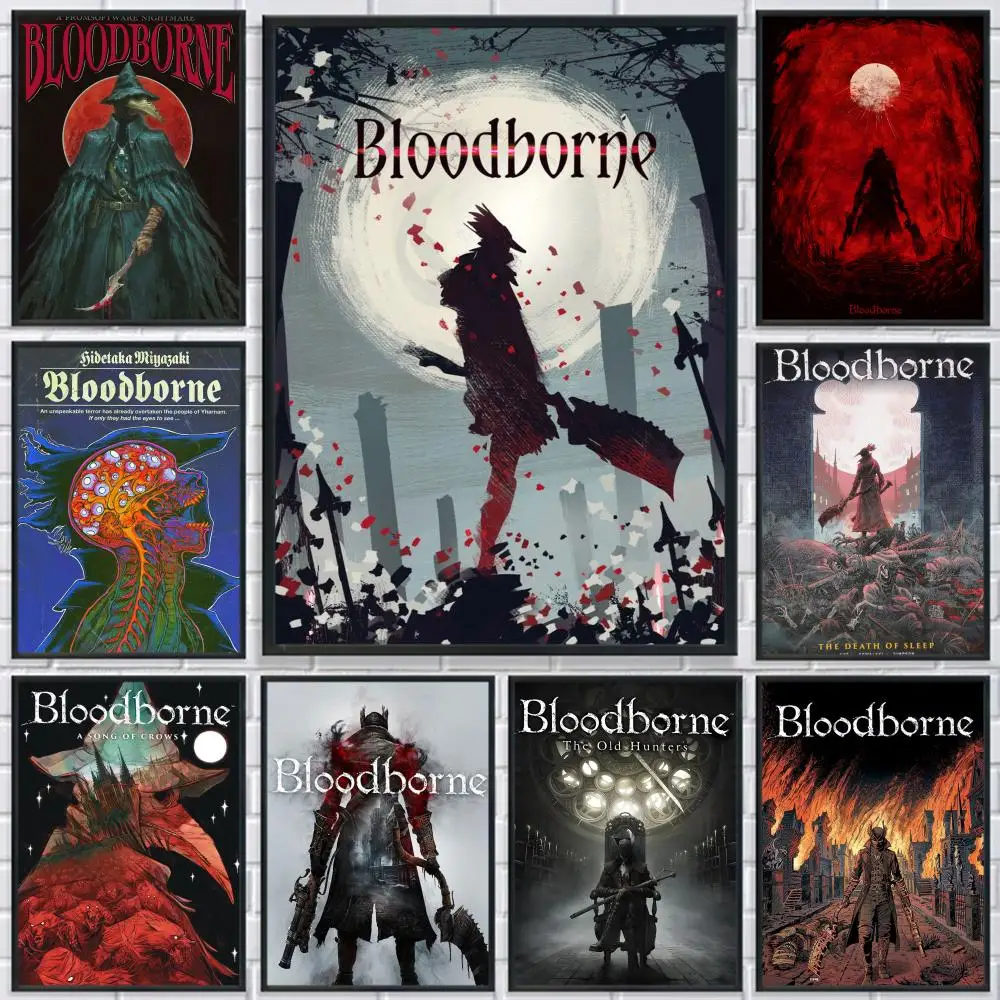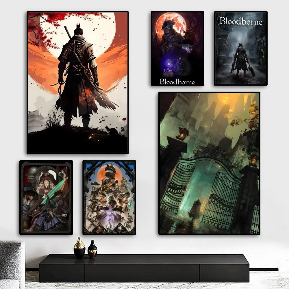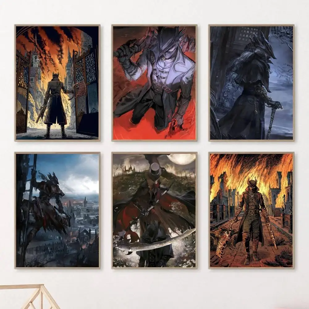 Klassiek zwart spel Dark Hunter B-Bloodborne Poster HD Print Vintage Wall Art Decor voor thuis studeerkamer