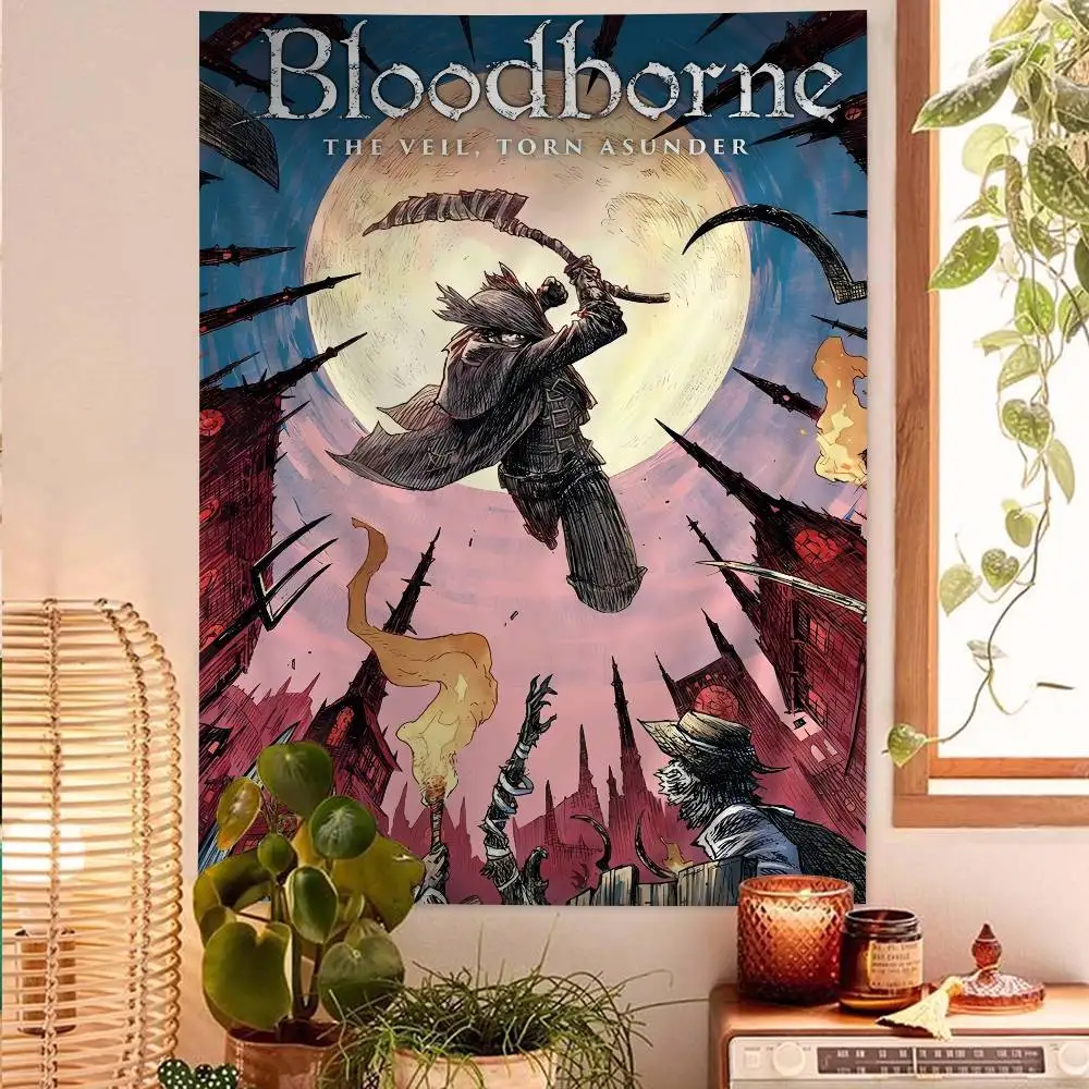 Dark Hunter B-Bloodborne Game DIY Wandtapijt Hippie Bloem Muurtapijten Dorm Decor Wall Art Decor