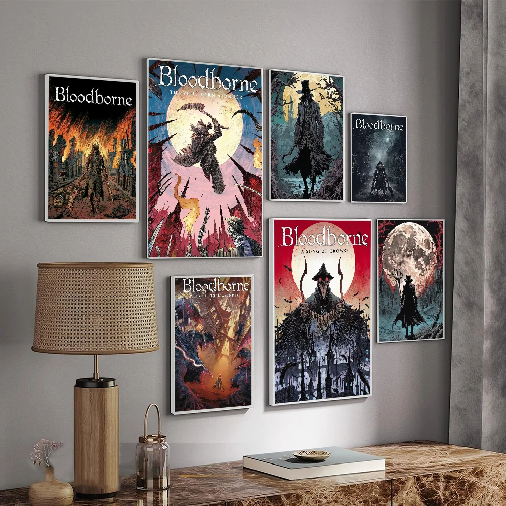 Bloodborne Game Poster Frameloze posterschilderij Mat zelfklevend papier voor woonkamer, hal, slaapkamer