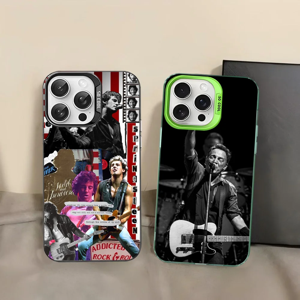 Zanger pop B-Bruce Springsteen Telefoon Case Voor Apple 11 12 13 14 15 16 Pro Max Plus Bescherm Plating geavanceerde Telefoon case