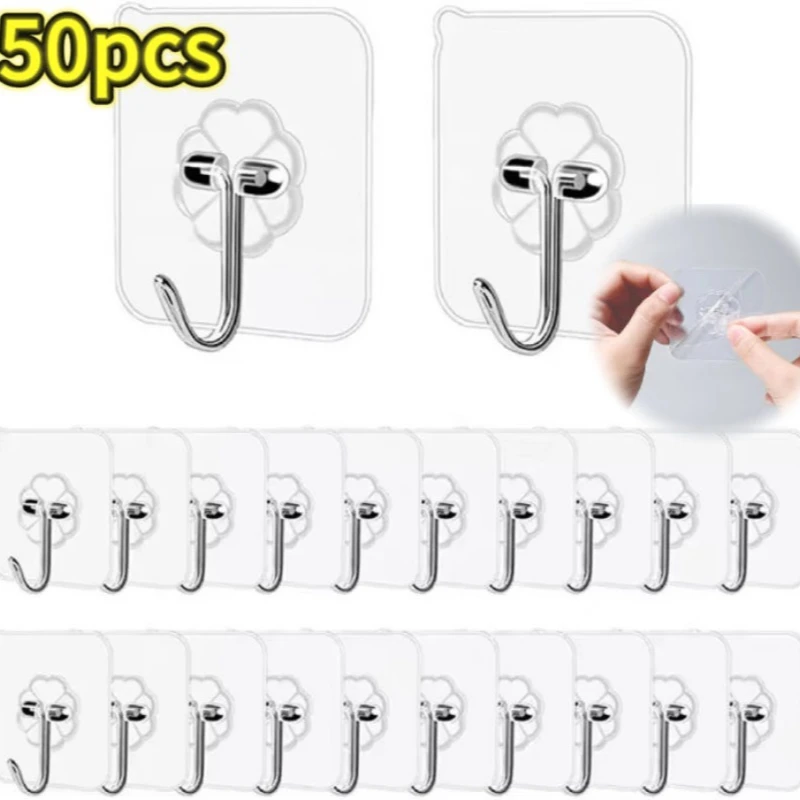 Zelfklevende zelfklevende muurophanghaken, zware transparante naadloze haken, sleutels, badkamer, douche, buitenkeukendeur, thuis