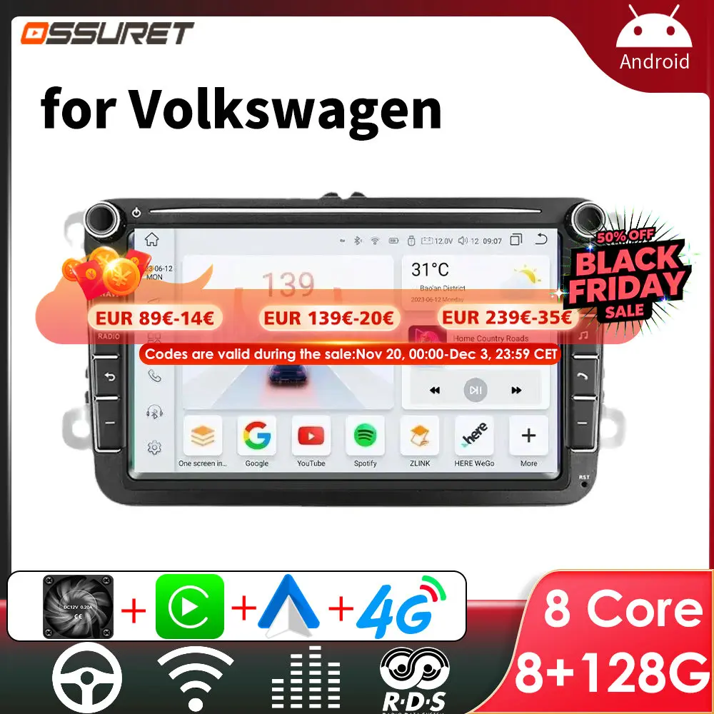 MEKEDE Universele 9 inch Carplay Radio Voor VW Volkswagen Passat B6 B7 B5 Golf Caddy Polo Jetta5 Skoda Auto Multimedia GPS autoradio 8-core DSP zonder DVD-speler Draadloze CarPlay Auto