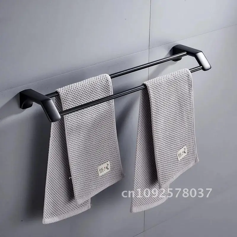 Matzwart roestvrij staal badkamer dubbele handdoekplank rek bad bar houder accessoires rail handdoek handdoek badkamer hanger