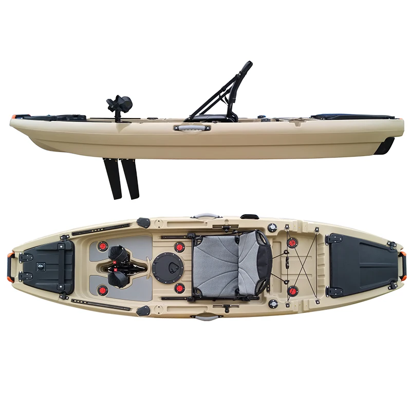 NEOKUDO Roto-gegoten 10FT Zeekajak Vissen Pedaal De Kajak LLDPE Pedaal Vissen Kajak met Roer Systeem