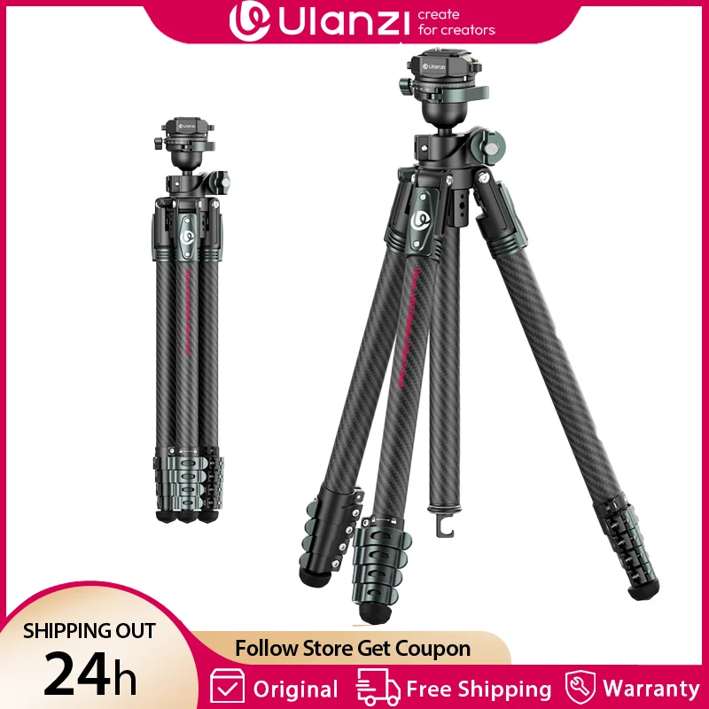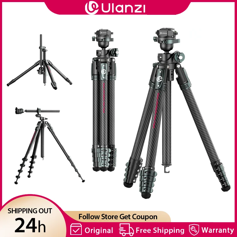 Ulanzi JJ05 1,84M GlideGo Video Professioneel koolstofvezel camerastatief met 360° ° Pan BallHead Lage hoek Schietbelasting 5KG Buiten