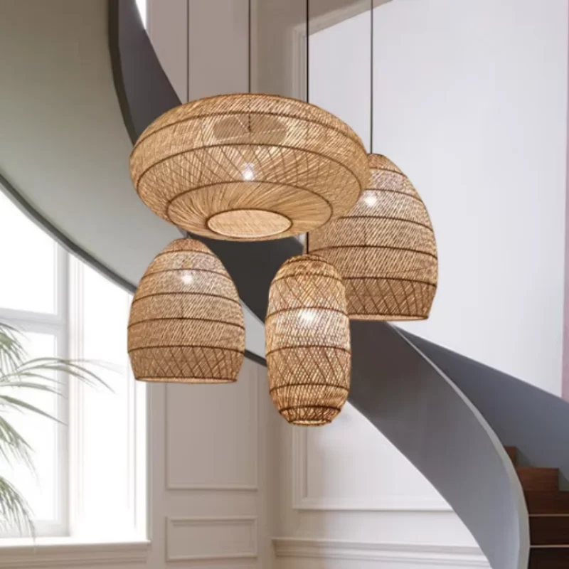 Handgemaakte vintage bamboe hanglamp boerderij bamboe rotan lampenkap hanglamp voor restaurant bruiloft decor kroonluchter