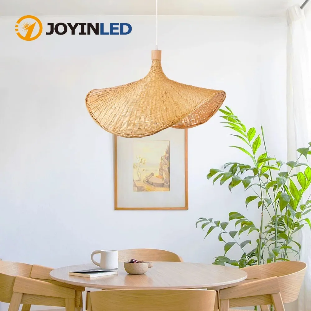Bamboe Geweven Strohoed Hanger Lamp Creatieve Keuken Eiland Hanglampen Woonkamer Decoratie Restaurant Schorsing Glans