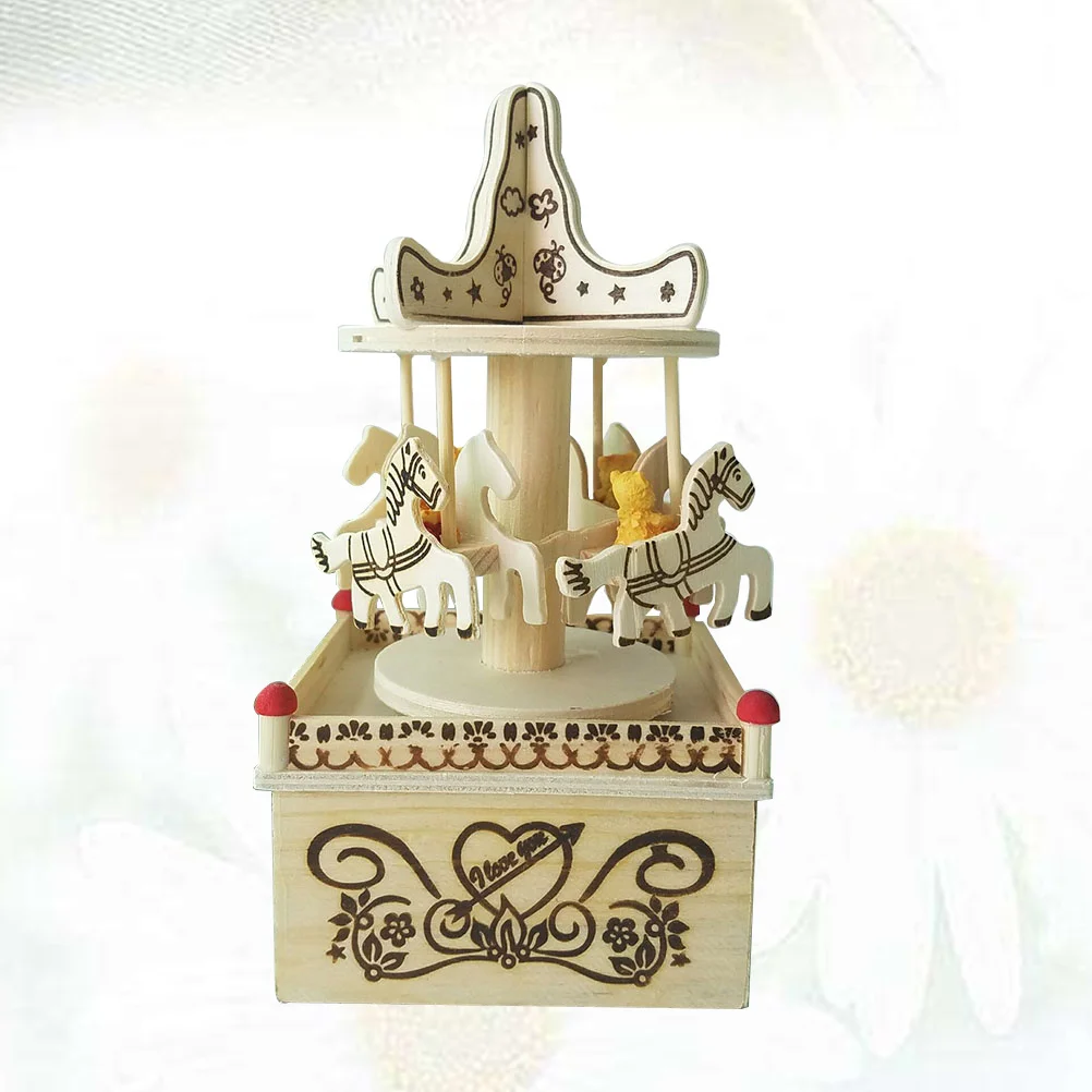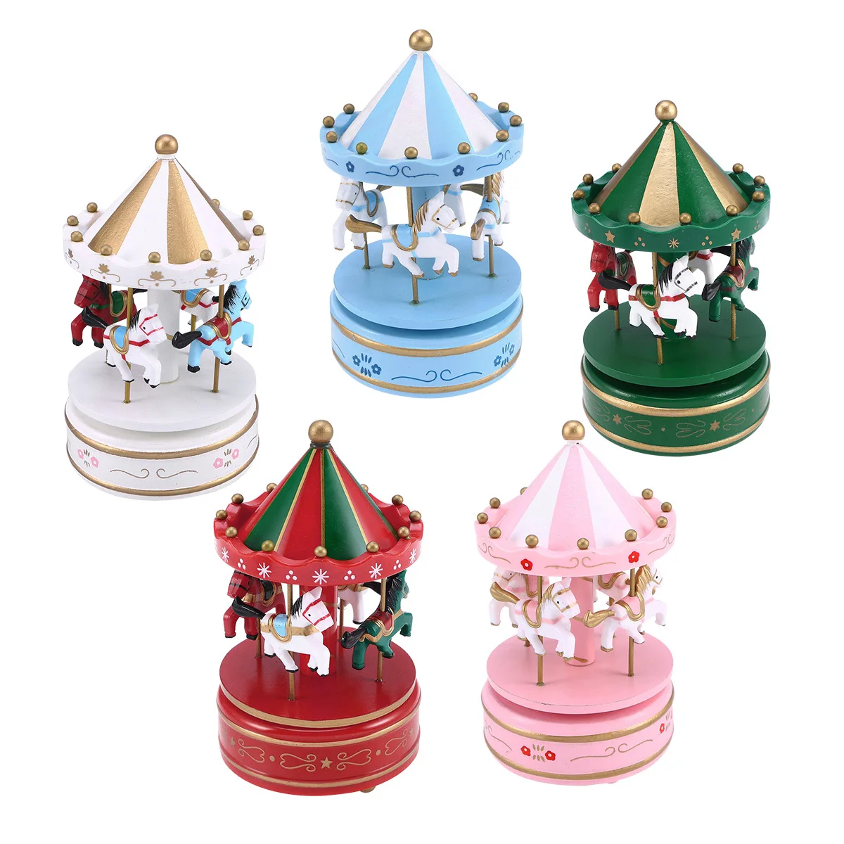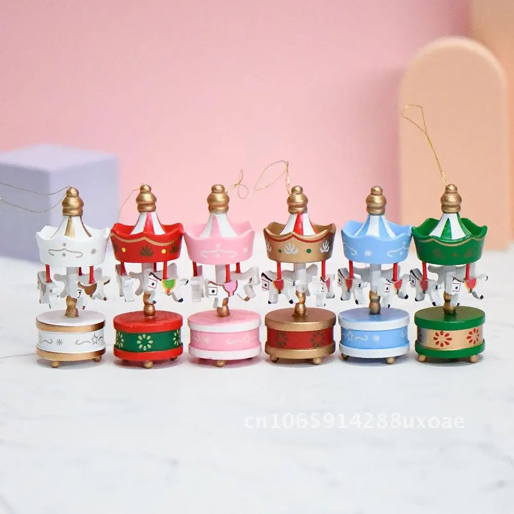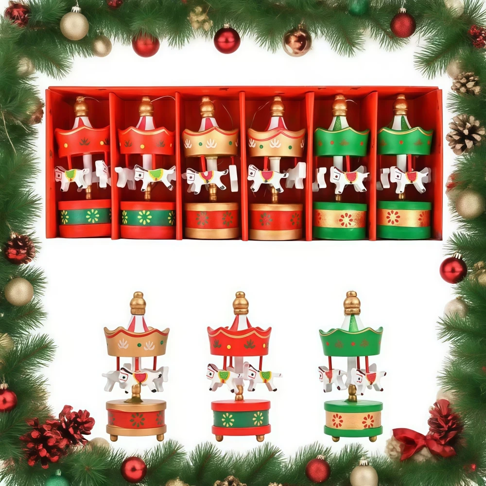 6 stks/doos Kerst Decoratie Houten Carrousel Paard Ornamenten Mini Houten Kerst Kinderen Geschenk Speelgoed Nieuwjaar Kerstcadeaus