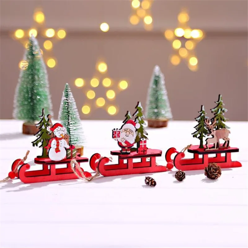 Kerstversiering Ornamenten Houten Slee Santa Claus Sneeuwpop Elanden Slee Hanger Voor Kerstboom Home Party Decor Kerstmis Cadeau