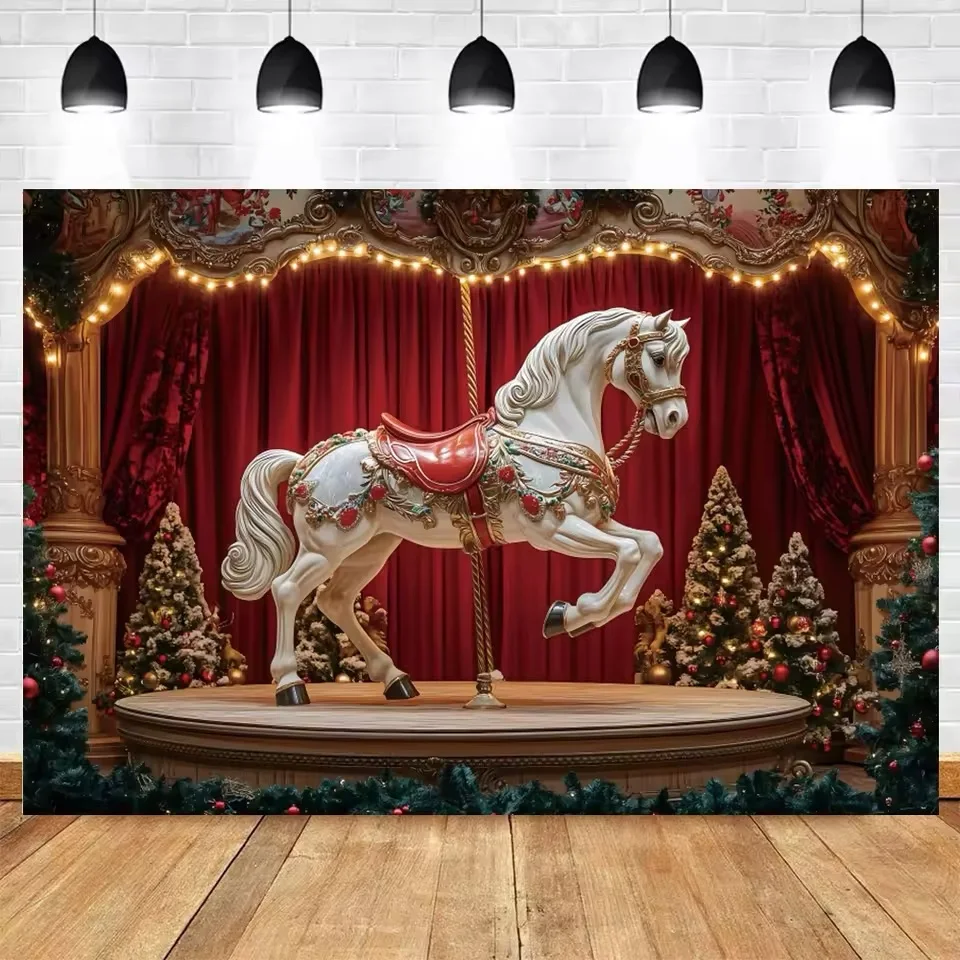 Kerst Carrousel Achtergrond Kerstboom Kerst Decoratie Prinses Meisjes Verjaardagsfeestje Fotografie Achtergrond Fotostudio Props