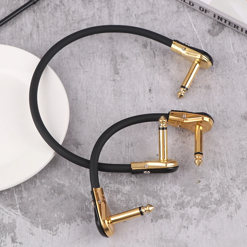 3PCS Vergulde Gitaar Patch Kabel Haakse 10/15/20/30/60cm 1/4 Gitaar Kabel voor Gitaar Effect Pedalen Audio Kabel Jack Plug