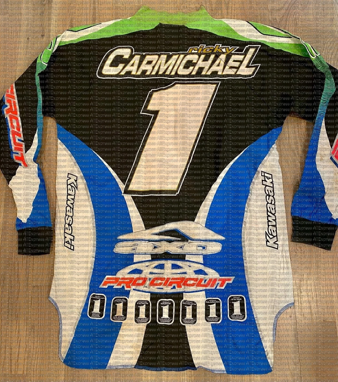 Kawasaki sneldrogend motorcrossshirt met lange mouwen voor heren # 1 Carmichael ademend casual motorfiets T-shirt Moto sportkleding