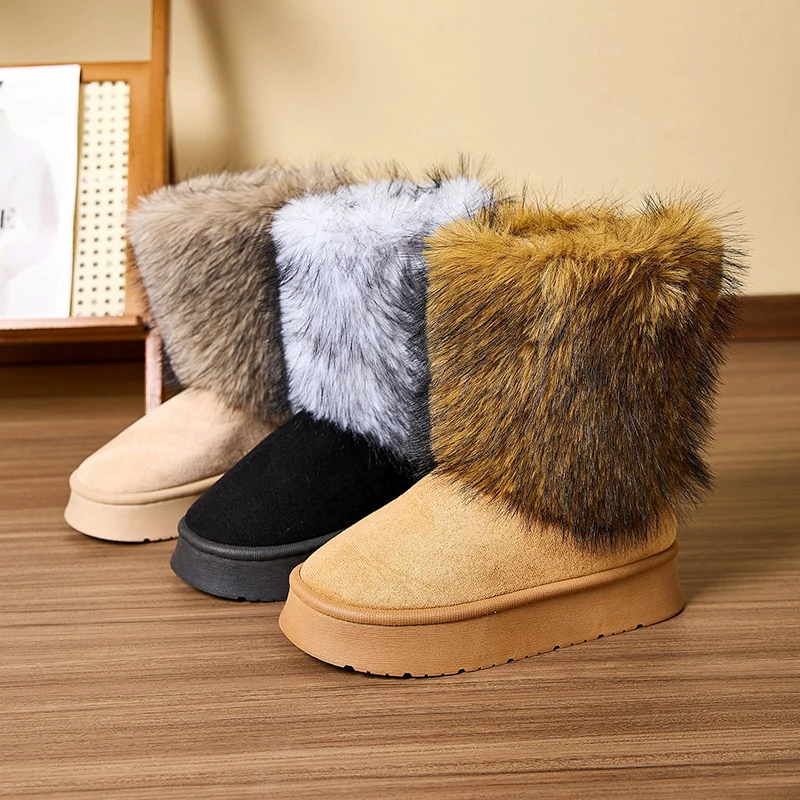 Winter Platform Enkellaarsjes Dames Casual Pluche Elegante Damesschoenen Luxe Designer Binnen Buiten Fuzzy Bont Sneeuwlaarzen Plat