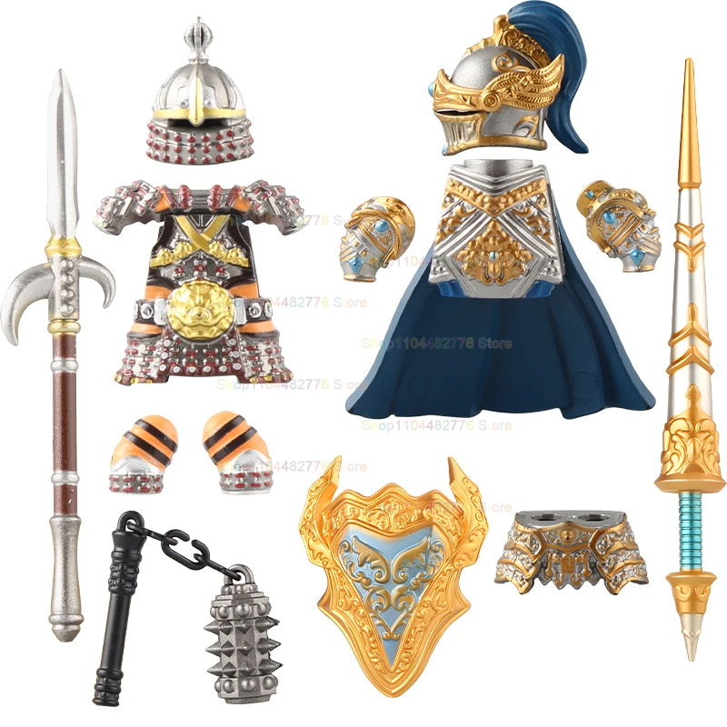 MOC Zware Armor Ridder Middeleeuwse Militaire Oorlog Paard Armor Zwaard Helm Wapens Accessoires Poppen Speelgoed Verjaardagscadeautjes S124-127