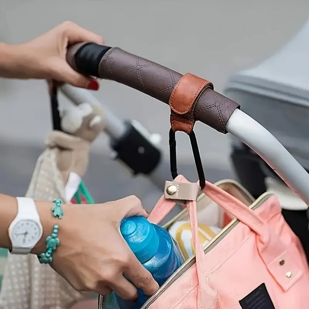 2 stuks kinderwagenhaken, premium tashangers voor luier- en boodschappentassen, veganistisch lederen kinderwagenriemen