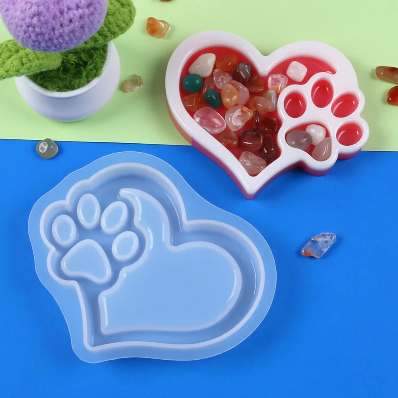 Diy kristalhars mal, hartvormige kattenpoten, kattenhars opslagplaat, desktop decoratie, displaystandaard, siliconen mal