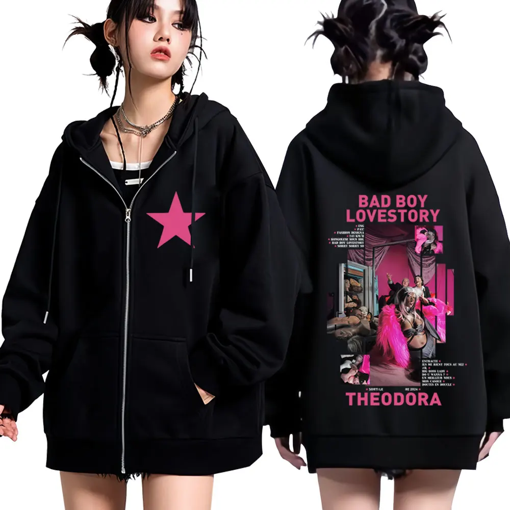 Rapper Theodora Mega Bbl Album Grafische Zip Up Sweatshirts Mannen Vrouwen Hip Hop Fashion Top Casual Esthetische Trendy Rits Hoodies