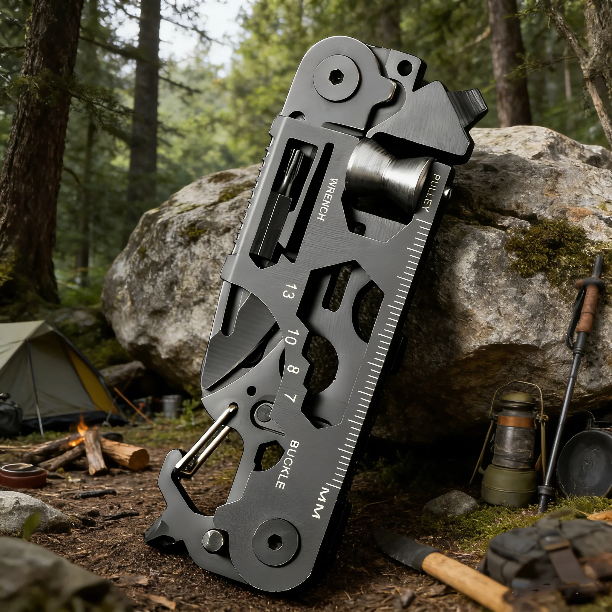 Multifunctionele combinatiekaart voor buitengebruik, opvouwbare tactische schaar, zakmes, mini-fietsreparatie, EDC-kampeeruitrusting