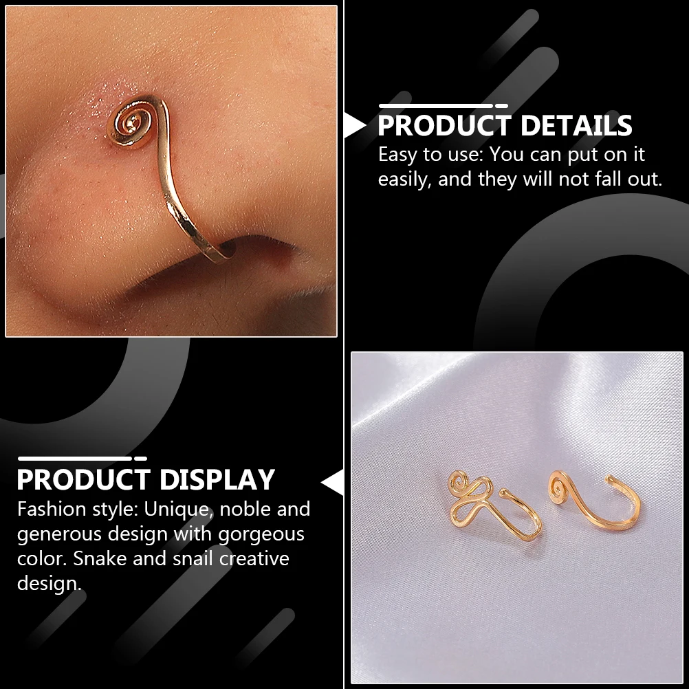 2 Stuks Metalen Neuspiercings-Vorm Slak en Slang Ontwerp Party Stage Cosplay Nep Neus Piercing Sieraden Hoops