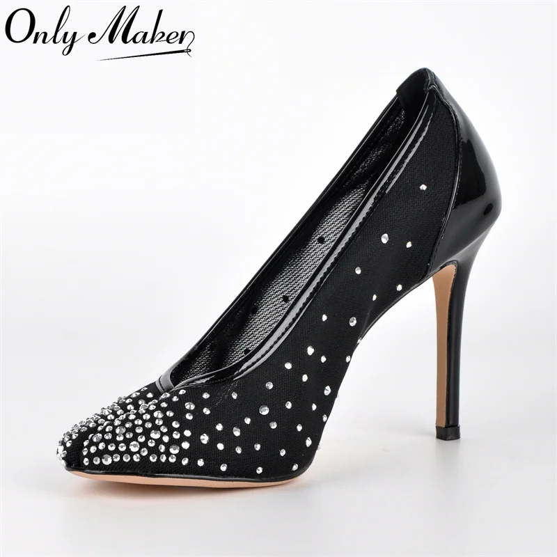 Onlymaker Vrouwen Schoenen Puntschoen Mary Jane 10Cm Mode Dunne Hakken Pumps Rood Lakleer Vrouw Big Size Classic pompen