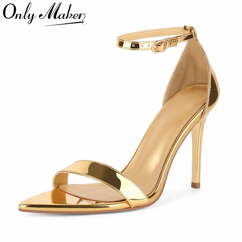 Onlymaker Vrouwen Peep Toe Goud 10 Cm Dunne Hoge Hakken Sandalen Dames Gesp Riem Open Teen Sexy Feest Stiletto Sandalen