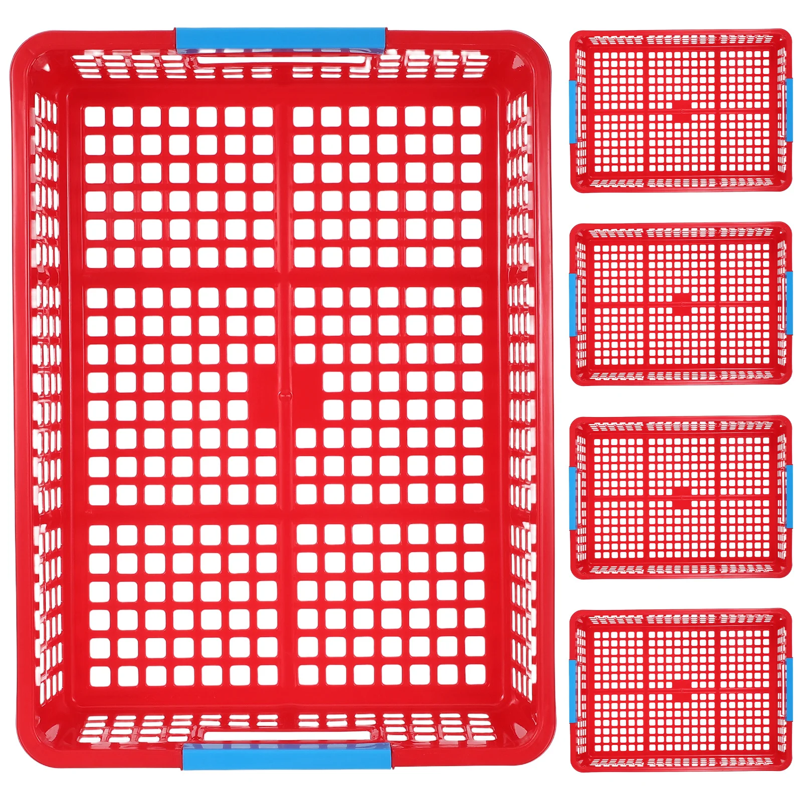 5 stuks rode plastic opbergmand stapelbare multifunctionele organizer voor desktop A4 documenten snacks fruit klaslokaal kantoor