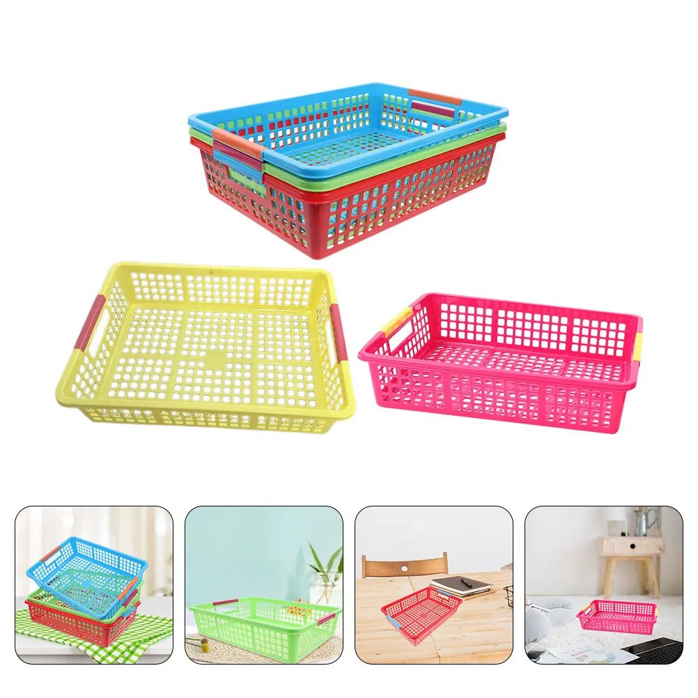 5 Stuks Plastic Opbergmanden Organizer Kleurrijke Stapelbare Multifunctionele Opbergvak Voor A4 Papieren Bestanden Fruit Snacks Klaslokaal