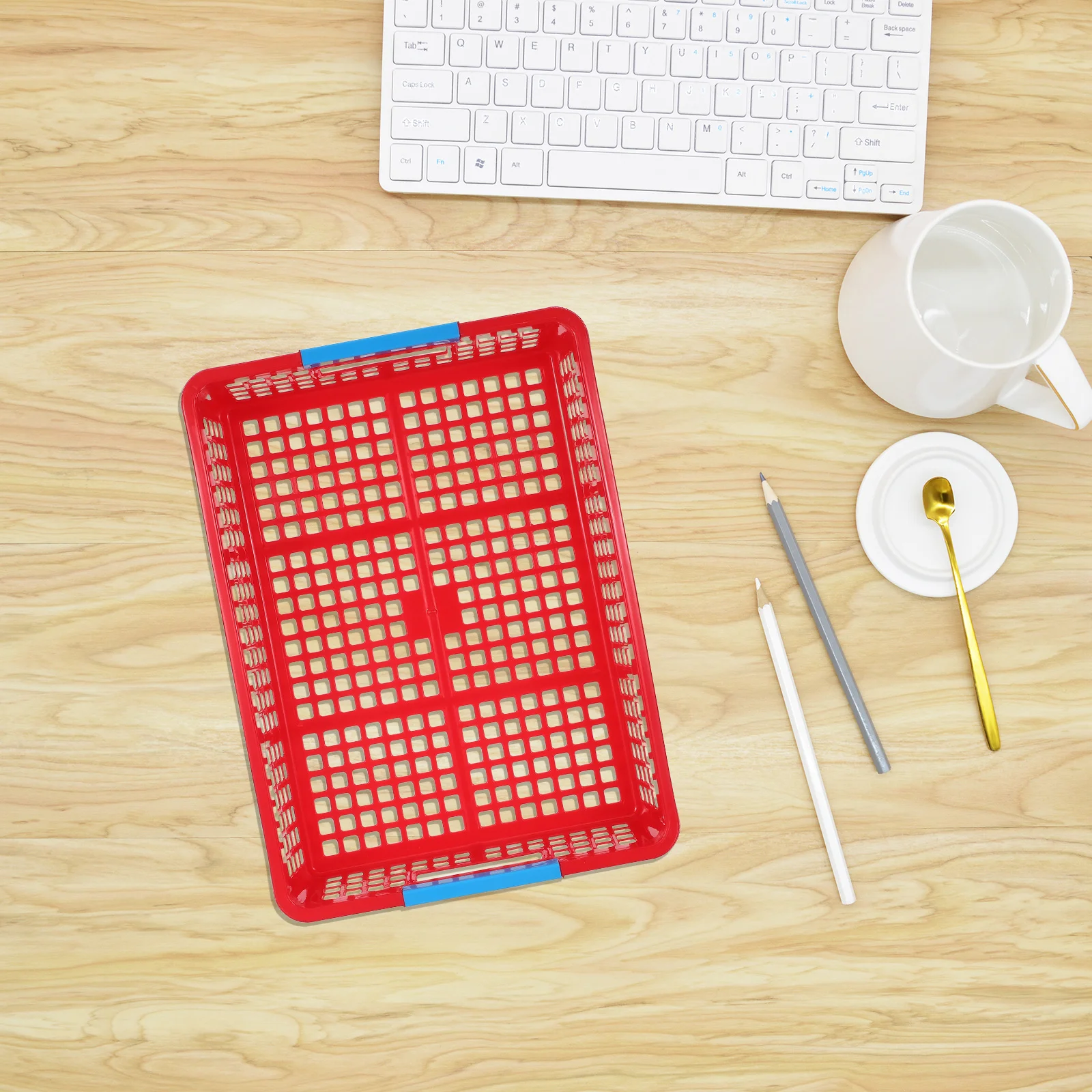 5 Stuks Rode Stapelbare Plastic Opslag Mand Multi-Gebruik Desktop Organizer Voor A4 Bestanden Snacks Fruit Brood Klaslokaal kantoor Thuis