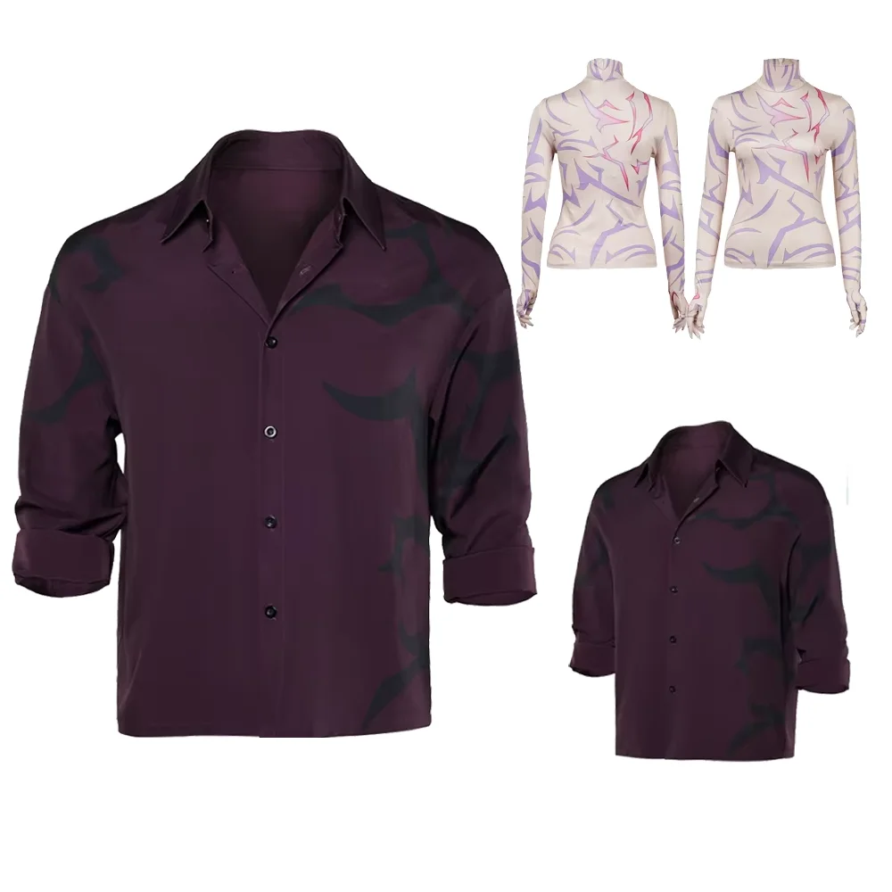 Kpop Devil Hunters Saja Boys Jinu Zwart Paars Bedrukt Shirt Cosplay Dagelijkse kostuums Pruik Ketting Oorbel Pak Rollenspel Halloween