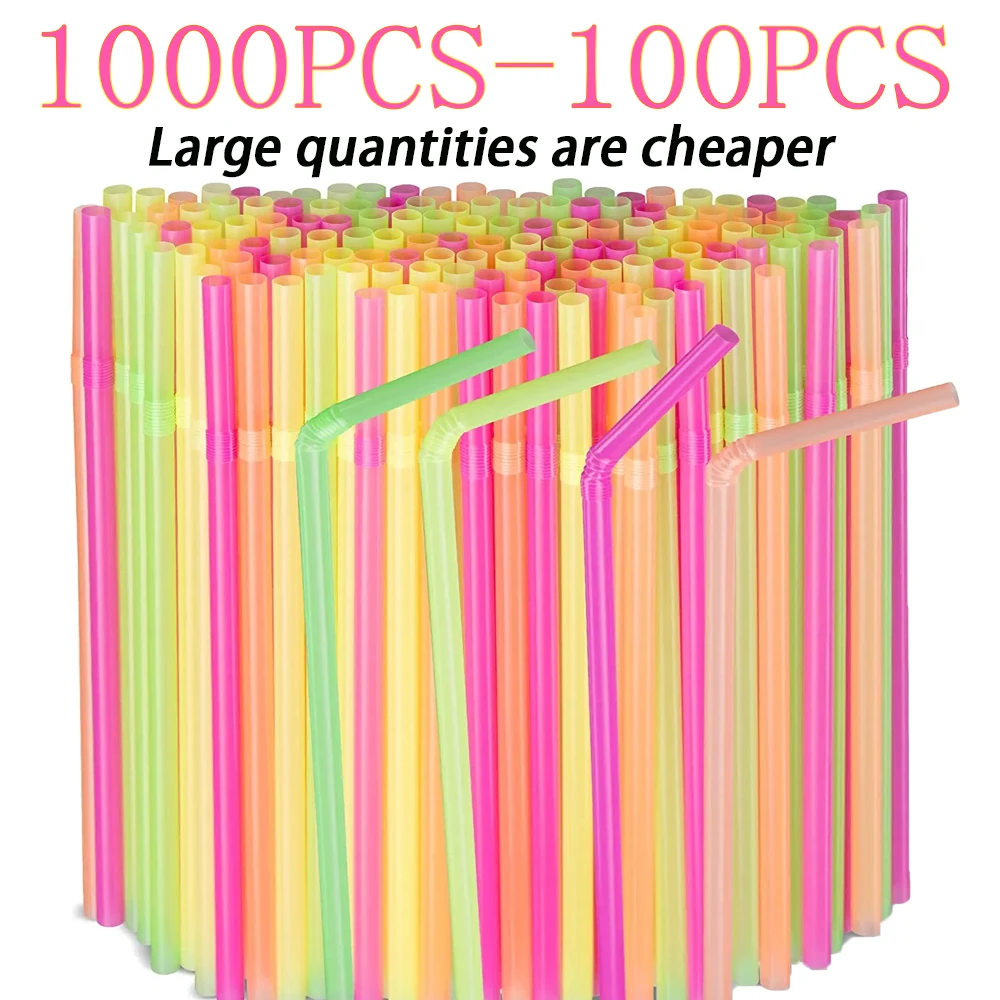 50-1000 Stuks Opvouwbare Veelkleurige Rietjes Pajitas Plastique Drank Stro Voor Party Bar Bruiloft Keuken Woonaccessoires
