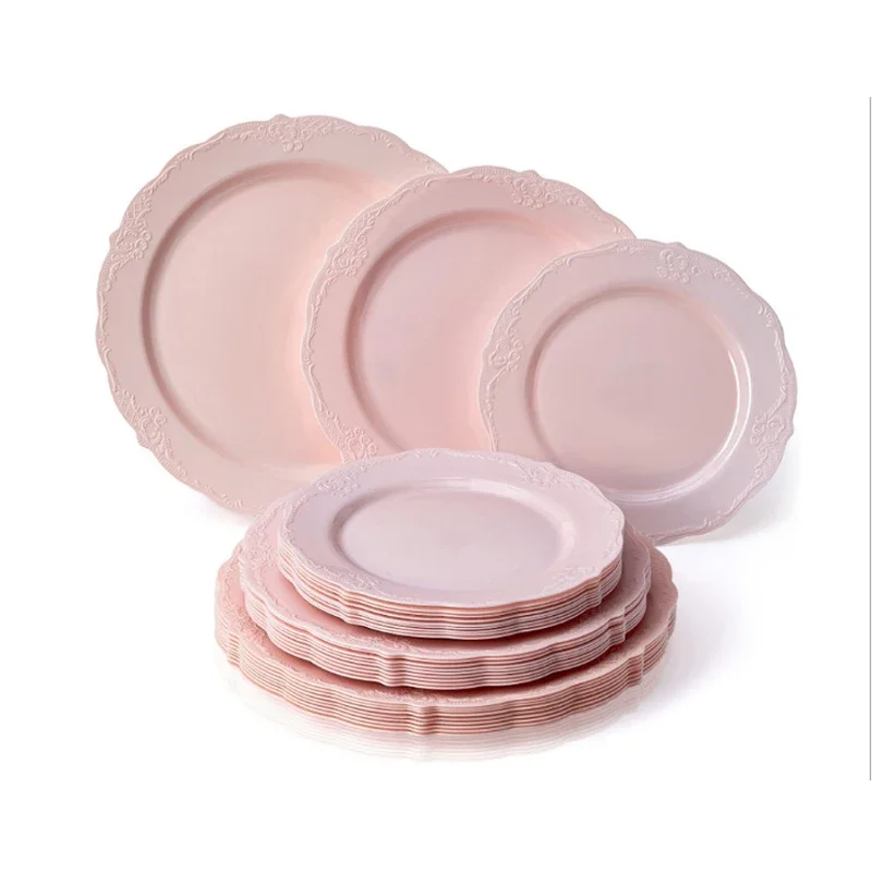 25 stks/partij Wegwerp Diner Borden Reliëf Roze Plastic PS Servies Party Bruiloft Tafel Instellingen Bloemen Douche Decoratie