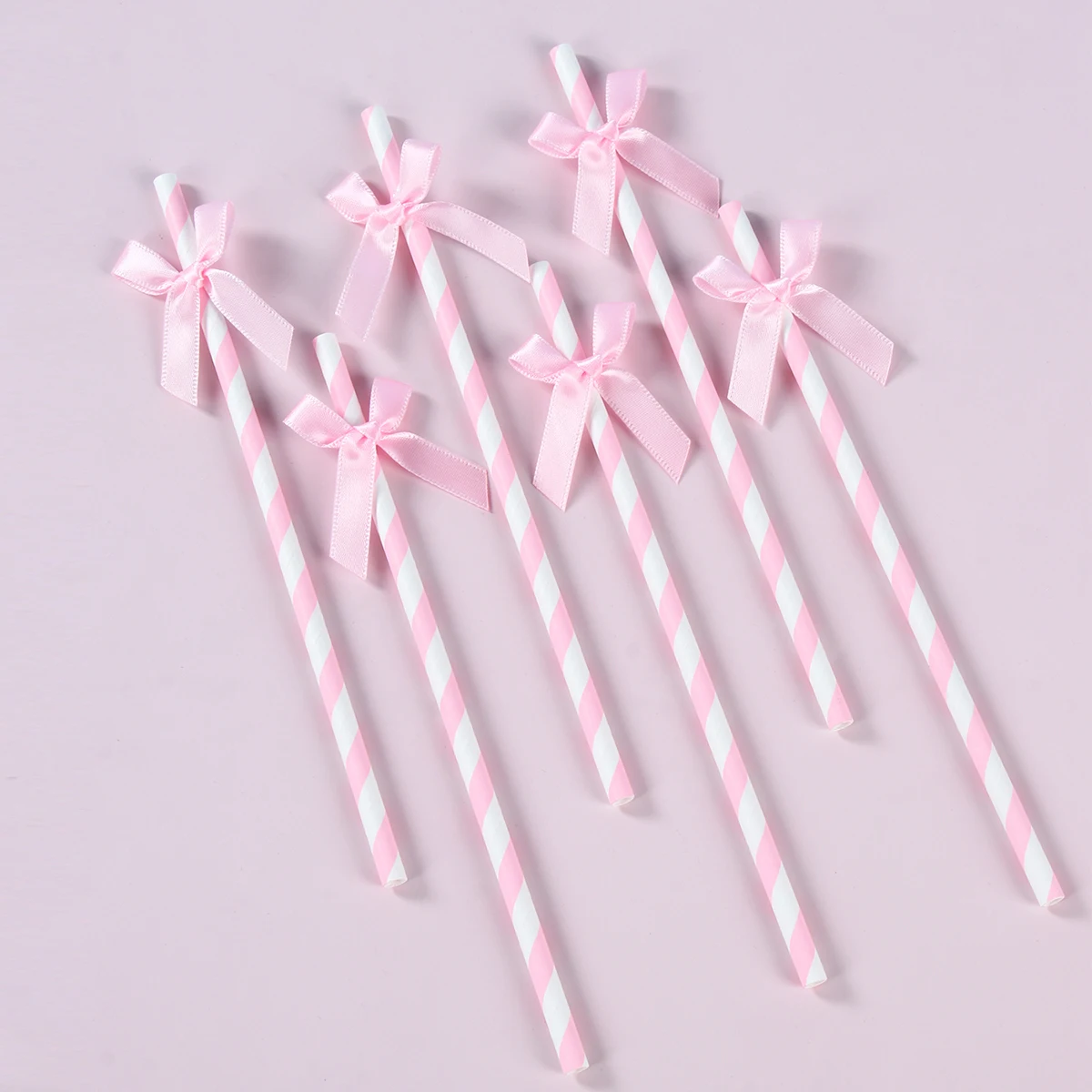 16 stks Boog Patroon Roze Streep Rietjes Verjaardag Bruiloft Decoratie Kids Jongens Meisjes Baby Douche Decor Levert Geschenken