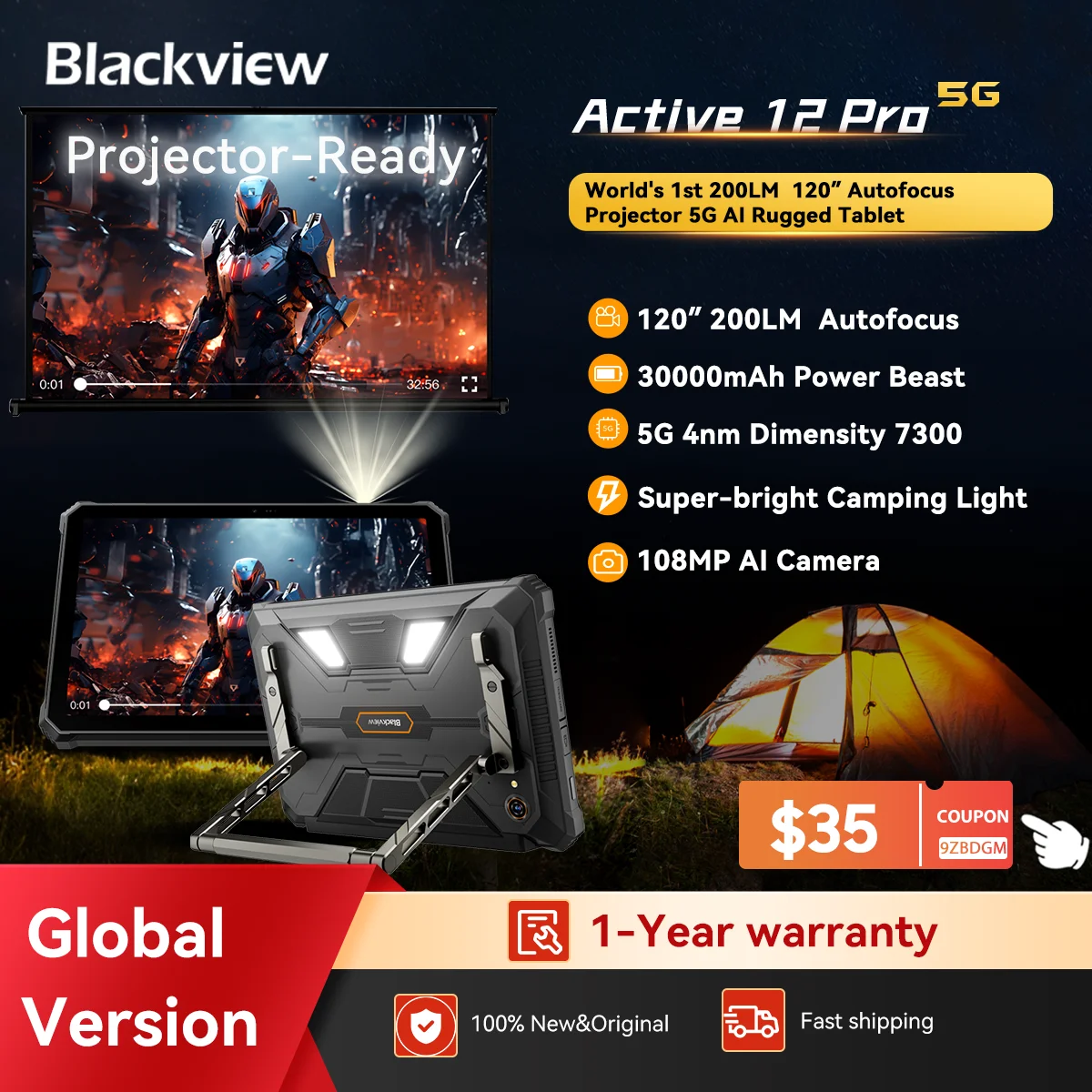 Wereldpremière Blackview Active 12 Pro Robuuste projectortablet 11 '' Pad Android 15 16GB 1TB 30000mAh Afmeting 7300 tablettelefoon
