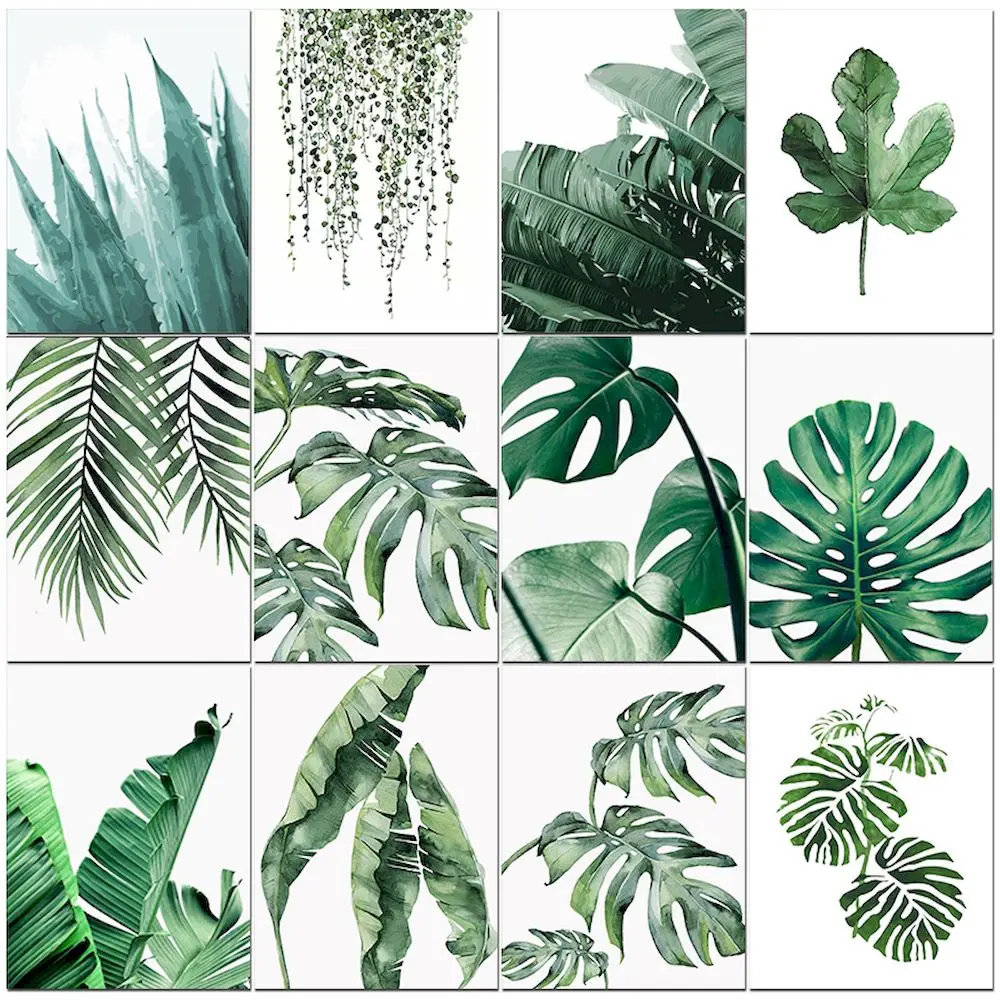 Olieverfschilderij op nummer Plant Groen blad Diy Landschap Acrylverf op canvas Foto's Kleuren op nummer Handgeschilderde decorset
