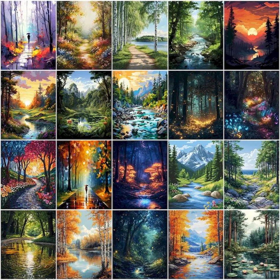 GATYZTORY Schilderij op nummer Volwassenen Foto Boslandschap Set Digitale olieverfschilderijen op nummer Kunst Foto Tekening Uniek cadeau
