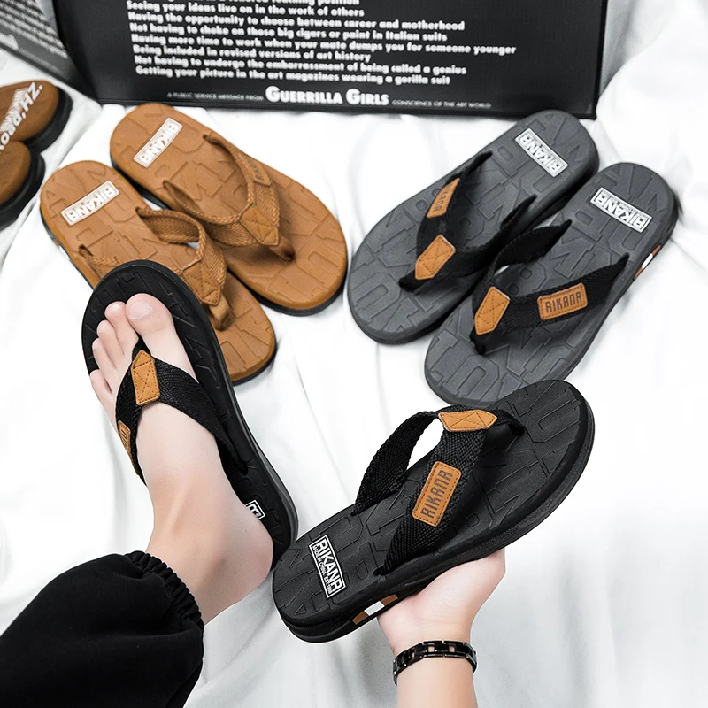 RIKANA trendy merk herenslippers zomer antislip zachte zool draag sandalen streetstyle gepersonaliseerde strandslippers heren