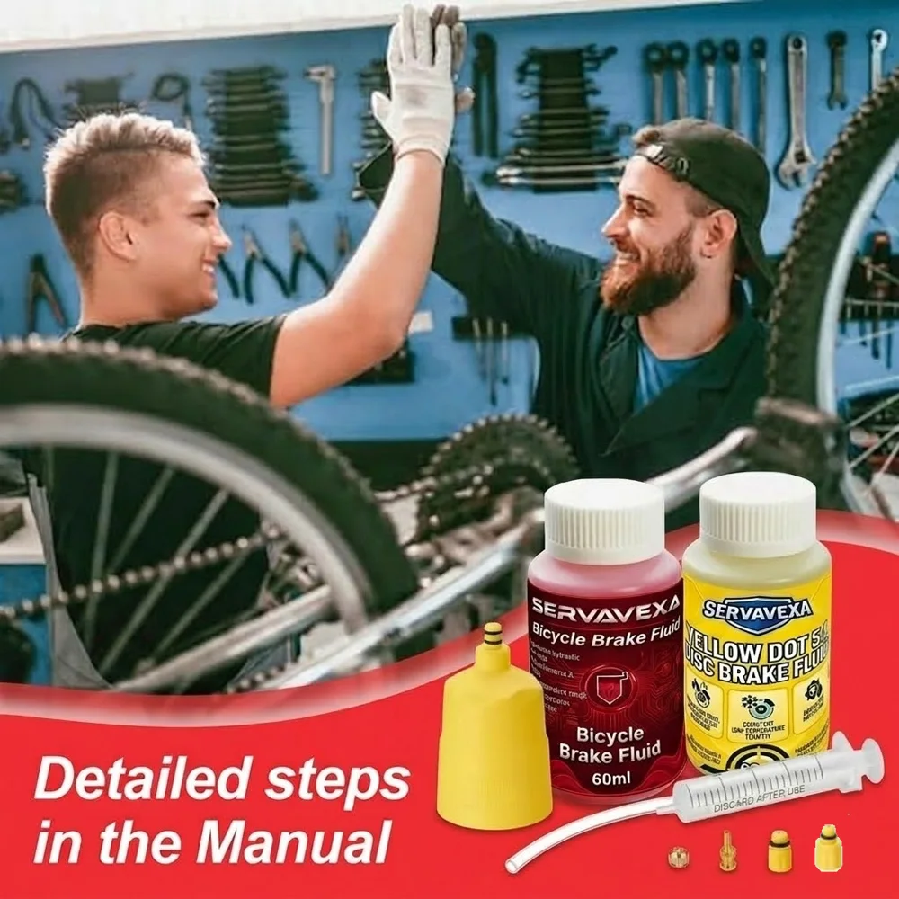 SERLAVEXA Fietsremontluchtingsset met 60 ml DOT 5.1 remvloeistof en minerale olie, compatibel met de meeste fietsremsystemen