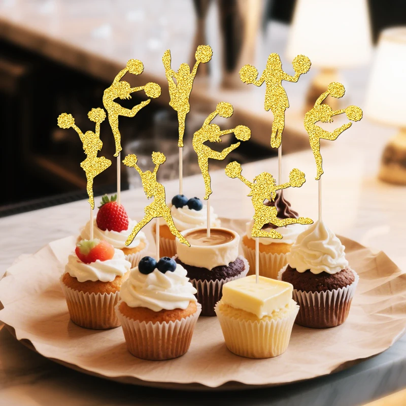 YOMDID 24 Stuks Cheerleader Cupcake Toppers Glitter Cheerleading Cupcake Picks Gymnastiek Silhouet Ontwerpen Party Cake Decoraties